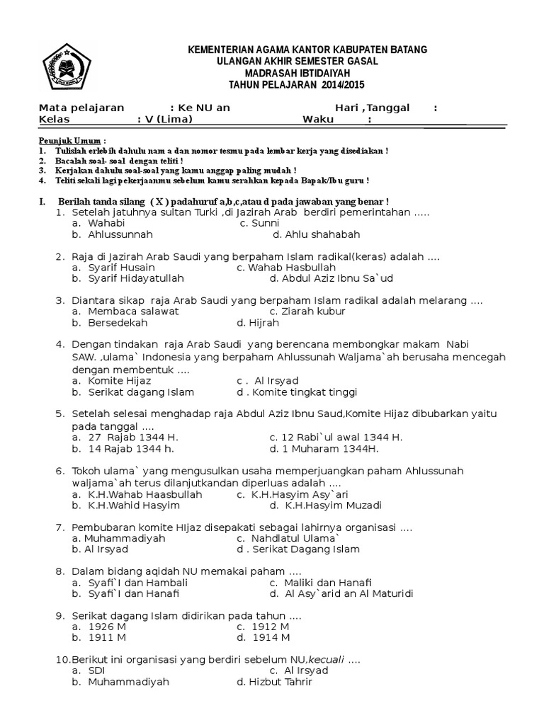 Soal Aswaja Kelas 10 Semester Ganjil Beserta Jawabannya : Lengkap Contoh Soal Ukk Aswaja Kelas 4 Sd Mi 2019 2020 Bospedia - Contoh soal pai kelas 10 semester 1 beserta jawabannya soal kemuhammadiyahan kelas 10 beserta jawabannya, bagian ke 8 contoh soal pendidikan agama islam dan budi pekerti kelas x semester latihan soal uas pkn sma kelas x semester ganjil tahun sumber :